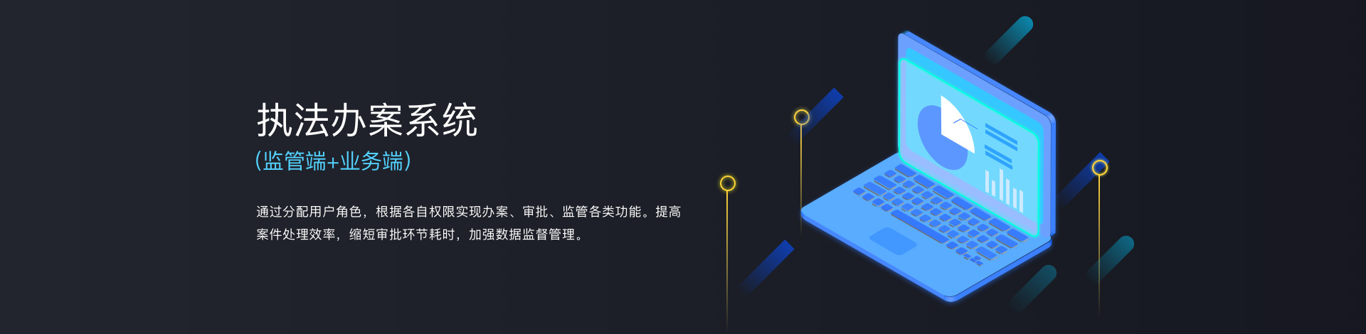 通过分配用户角色,根据各自权限实现办案、审批、监管、各类功能。提高案件处理效率,缩短审批环节耗时,加强数据监督管理。
